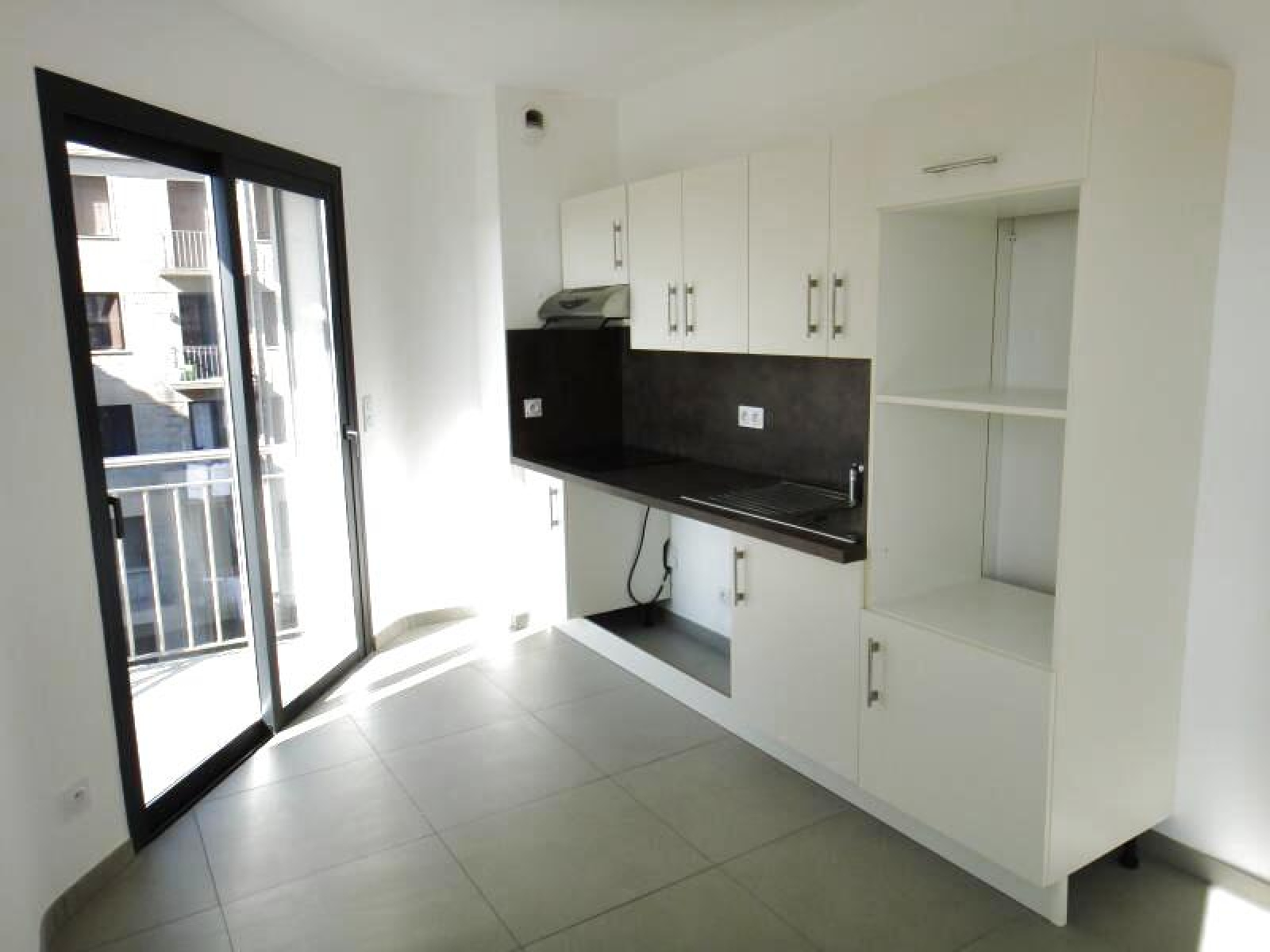 Le bien se compose comme suit, 1 grand séjour avec 1 cuisine américaine moderne aménagée et équipée (plaque de cuisson, évier, hotte, placard de rangement), le salon/coin cuisine donnant sur 2 balcons, 1 placard de rangement dans le salon, 2 chambres avec placard aménagé, 1 wc indépendant, 1 salle de bain.
